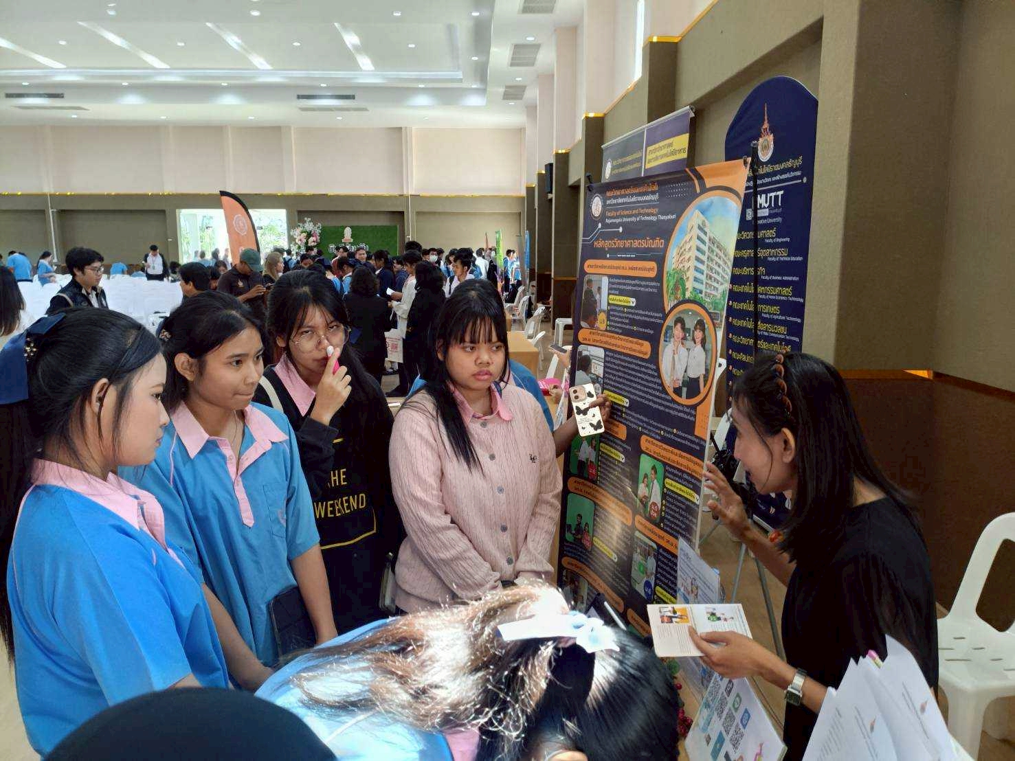 December 19, 2025คณะวิทยาศาสตร์และเทคโนโลยี มหาวิทยาลัยเทคโนโลยีราชมงคลธัญบุรี ออกแนะแนวประชาสัมพันธ์หลักสูตร เพื่อถ่ายทอดองค์ความรู้ด้านการจัดการเรียนการสอน แนวทางการประกอบอาชีพ และสมรรถนะวิชาชีพที่สอดคล้องกับความต้องการของภาคอุตสาหกรรมอาหาร ซึ่งเป็นส่วนหนึ่งของการพัฒนากำลังคนที่มีคุณภาพและตอบสนองต่อการพัฒนาประเทศอย่างยั่งยืนใน กิจกรรม EduGuide & International Day 2025 ในวันที่ 19 ธันวาคม พ.ศ. 2568 ณ โรงเรียนเตรียมอุดมศึกษาน้อมเกล้า ปทุมธานี โดยมีเป้าหมายสำคัญในการส่งเสริมการเข้าถึงข้อมูลทางการศึกษาที่มีคุณภาพและเท่าเทียม ซึ่งสอดคล้องกับ เป้าหมายการพัฒนาที่ยั่งยืน เป้าหมายที่ 4 (SDG 4: Quality Education) ที่มุ่งเน้นการสร้างโอกาสทางการเรียนรู้ตลอดชีวิตให้แก่ผู้เรียนทุกระดับ