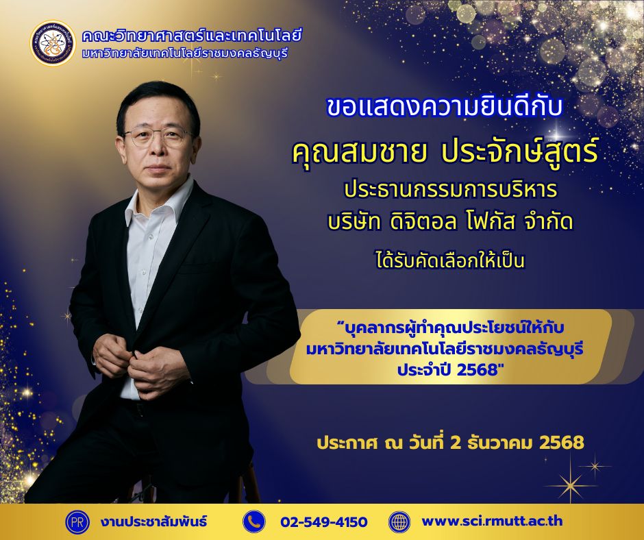 ประชาสัมพันธ์หลักสูตรของสาขาวิชาฟิสิกส์ คณะวิทยาศาสตร์และเทคโนโลยี มทร.ธัญบุรีFebruary 8, 2023ขอแสดงความยินดีกับบุคลากรที่ไดัรับการรับรองตามมาตรฐานอาจารย์ ด้านการเรียนการสอนมืออาชีพ มทร.ธัญบุรี RMUTT-PSFFebruary 9, 2023 Published by พจรินทร์ ผาสุข on February 9, 2023 Categories ข่าวสาขาวิชาชีววิทยา แสดงความยินดี Tags Share0 พจรินทร์ ผาสุข Related postsDecember 13, 2025นักศึกษารายวิชาเทคโนโลยีชีวภาพของสาหร่าย เข้าเยี่ยมชมและศึกษาดูงานเกี่ยวกับการประยุกต์ใช้สาหร่ายในด้านต่างๆ และการขยายขนาดการเพาะเลี้ยงสาหร่ายในระดับอุตสาหกรรมRead moreDecember 3, 2025คณะวิทยาศาสตร์และเทคโนโลยี แสดงศักยภาพด้านการวิจัยบนเวทีนานาชาติ ด้วยผลงานตีพิมพ์ในวารสารระดับนานาชาติฐานข้อมูล Scopus รวมทั้งสิ้น 9 ผลงาน ประจำเดือนพฤศจิกายน 2568Read moreDecember 2, 2025ขอแสดงความยินดีกับอาจารย์/นักวิจัยที่ได้รับรางวัลจากส่งผลงานเข้าร่วมการประกวดรางวัล “Investor’s Choice Award” ภายในงาน “NRCT Forum 2025Read more Comments are closed.