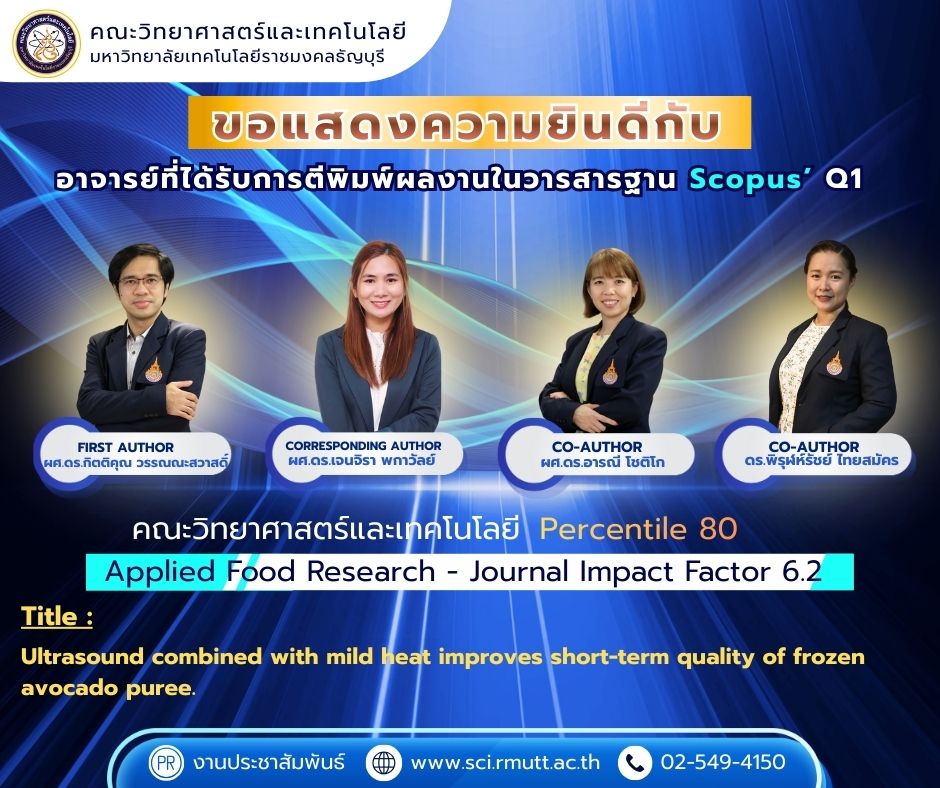 December 3, 2025คณะวิทยาศาสตร์และเทคโนโลยี มหาวิทยาลัยเทคโนโลยีราชมงคลธัญบุรี ประกาศความภาคภูมิใจอีกครั้ง ด้วยผลงานวิจัยระดับนานาชาติที่ได้รับการตีพิมพ์ในวารสารฐานข้อมูล Scopus รวมทั้งสิ้น 9 ผลงาน ประจำเดือนพฤศจิกายน 2568 สะท้อนพลังความสร้างสรรค์และศักยภาพของนักวิจัยที่ก้าวสู่เวทีโลกอย่างโดดเด่น