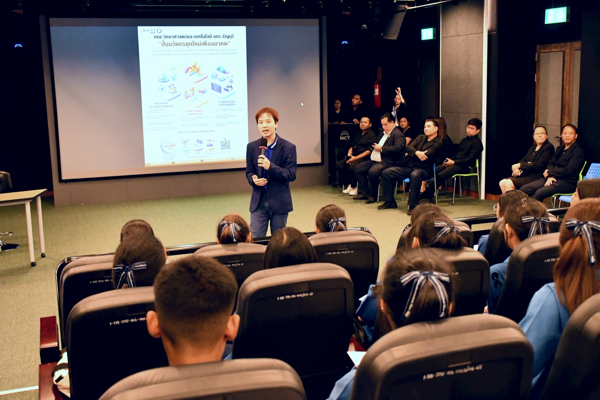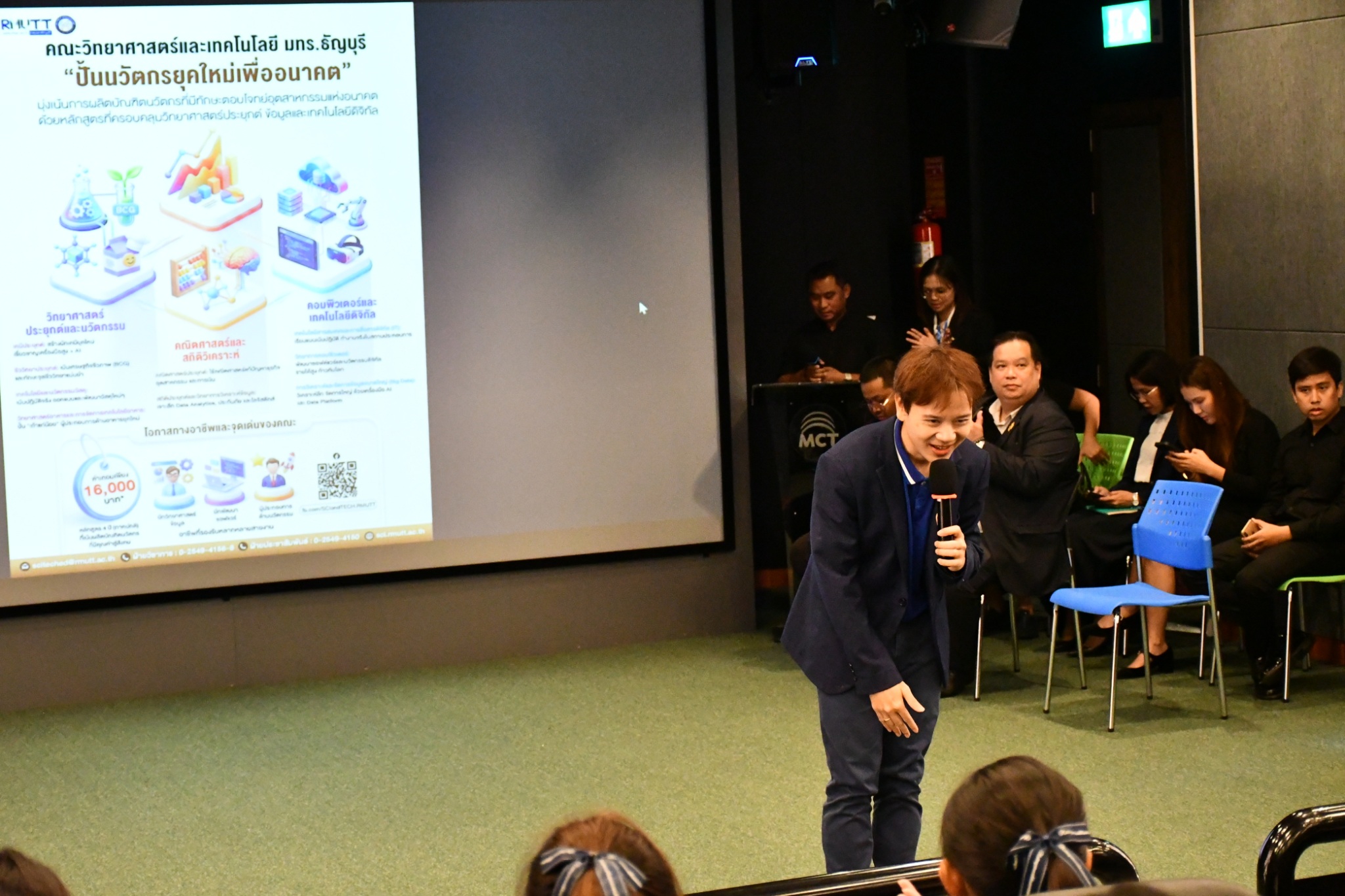 March 17, 2026คณะวิทยาศาสตร์และเทคโนโลยี ได้เข้าร่วมบรรยายแนะนำคณะและหลักสูตรสาขาวิชา โดยได้รับเกียรติจาก ดร.กฤษณพงศ์ เลิศบำรุงชัย อาจารย์สาขาวิชาวิทยาการคอมพิวเตอร์ และหัวหน้างานประชาสัมพันธ์ เป็นผู้แนะแนวและให้ข้อมูลเชิงลึกแก่นักเรียนอย่างใกล้ชิด พร้อมกันนี้ พิธีเปิดได้รับเกียรติจาก รองศาสตราจารย์ ดร.สมหมาย ผิวสอาด อธิการบดีมหาวิทยาลัยเทคโนโลยีราชมงคลธัญบุรี ให้เกียรติเป็นประธานในพิธี