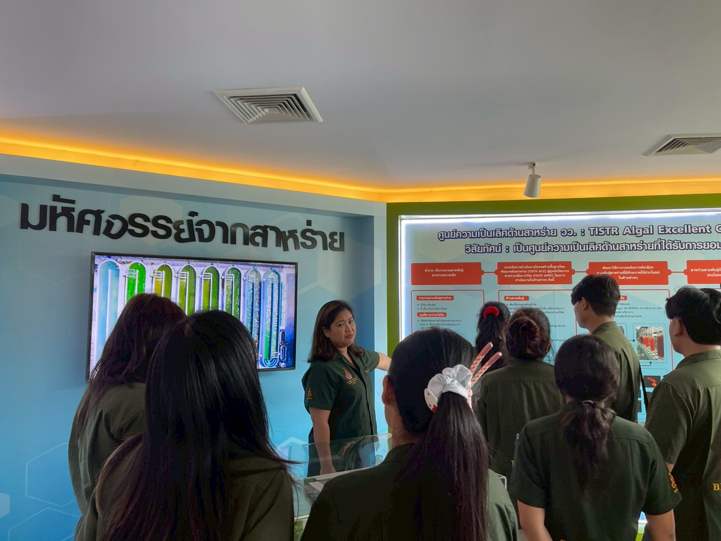 คณะศึกษาดูงานได้เข้าเยี่ยมชม ศูนย์ความเป็นเลิศด้านสาหร่าย (ALEC) ณ สถาบันวิจัยวิทยาศาสตร์และเทคโนโลยีแห่งประเทศไทย (วว.) เพื่อศึกษาเทคนิคการเพาะเลี้ยงและขยายขนาดการผลิตสาหร่ายในระดับอุตสาหกรรม (Industrial Scale) รวมถึงการแปรรูปและประยุกต์ใช้สาหร่ายในการสร้างมูลค่าเพิ่มทางเศรษฐกิจ ซึ่งสอดคล้องกับการพัฒนานวัตกรรมทางวิทยาศาสตร์