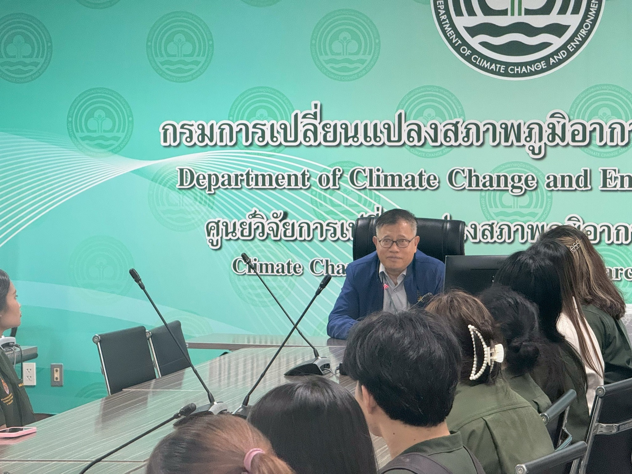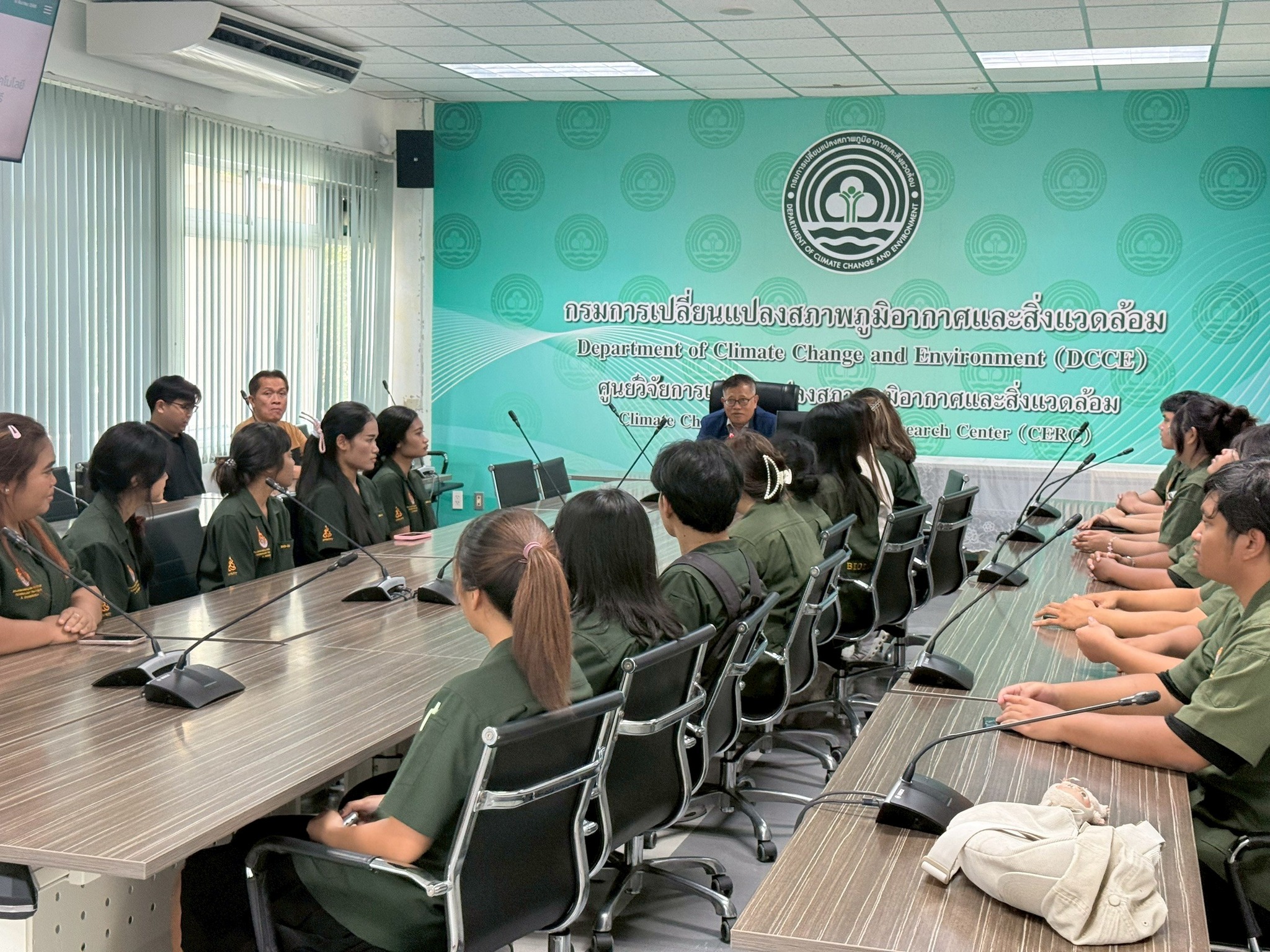 จากนั้น ได้เดินทางไปศึกษาดูงานต่อที่ ศูนย์วิจัยการเปลี่ยนแปลงสภาพภูมิอากาศและสิ่งแวดล้อม กรมการเปลี่ยนแปลงสภาพภูมิอากาศและสิ่งแวดล้อม เพื่อเรียนรู้แนวทางการประยุกต์ใช้สาหร่ายในการแก้ปัญหาสิ่งแวดล้อม (Environmental Solutions) โดยเฉพาะการดูดซับก๊าซคาร์บอนไดออกไซด์และการบำบัดน้ำเสีย ซึ่งเป็นกลไกสำคัญในการต่อสู้กับวิกฤตโลกร้อน