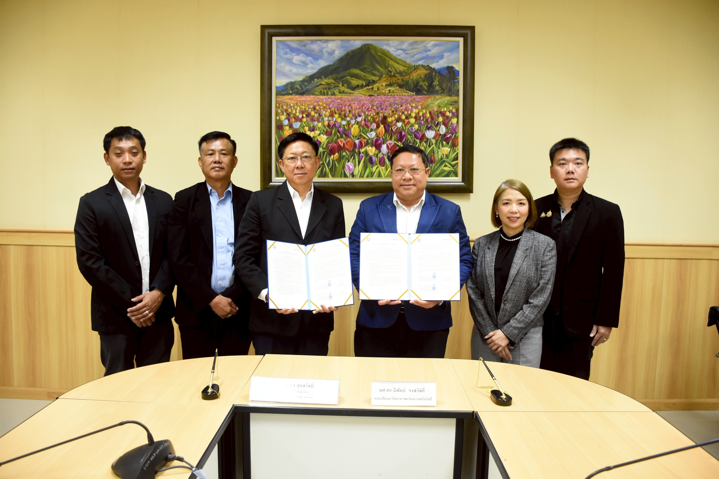 พิธีการสำคัญในครั้งนี้ได้รับเกียรติจาก ผศ.ดร.นิพัทธ์ จงสวัสดิ์ คณบดีคณะวิทยาศาสตร์และเทคโนโลยี และ นายสรพล สุขสวัสดิ์ ประธานเจ้าหน้าที่ปฏิบัติการ บริษัท โอเพ่นเซิร์ฟ จำกัด (มหาชน) ร่วมเป็นผู้ลงนาม เพื่อประสานความร่วมมือในการพัฒนาศักยภาพทางวิชาการ เทคโนโลยี และนวัตกรรมร่วมกัน