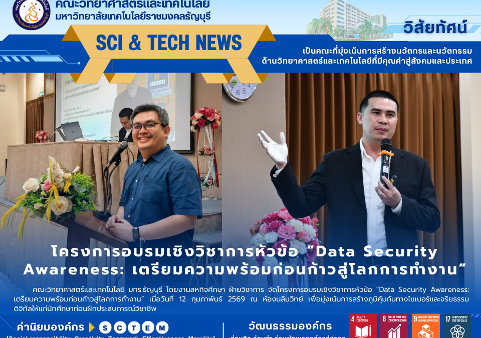 โครงการอบรมเชิงวิชาการหัวข้อ “Data Security Awareness: เตรียมความพร้อมก่อนก้าวสู่โลกการทำงาน”