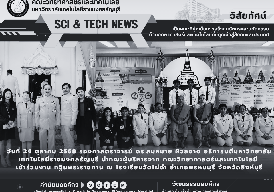 October 25, 2025วันที่ 24 ตุลาคม 2568 รองศาสตราจารย์ ดร.สมหมาย ผิวสอาด อธิการบดีมหาวิทยาลัยเทคโนโลยีราชมงคลธัญบุรี นำคณะผู้บริหารจาก คณะวิทยาศาสตร์และเทคโนโลยี เข้าร่วมงาน กฐินพระราชทาน ณ โรงเรียนวัดไผ่ดำ อำเภอพรหมบุรี จังหวัดสิงห์บุรี