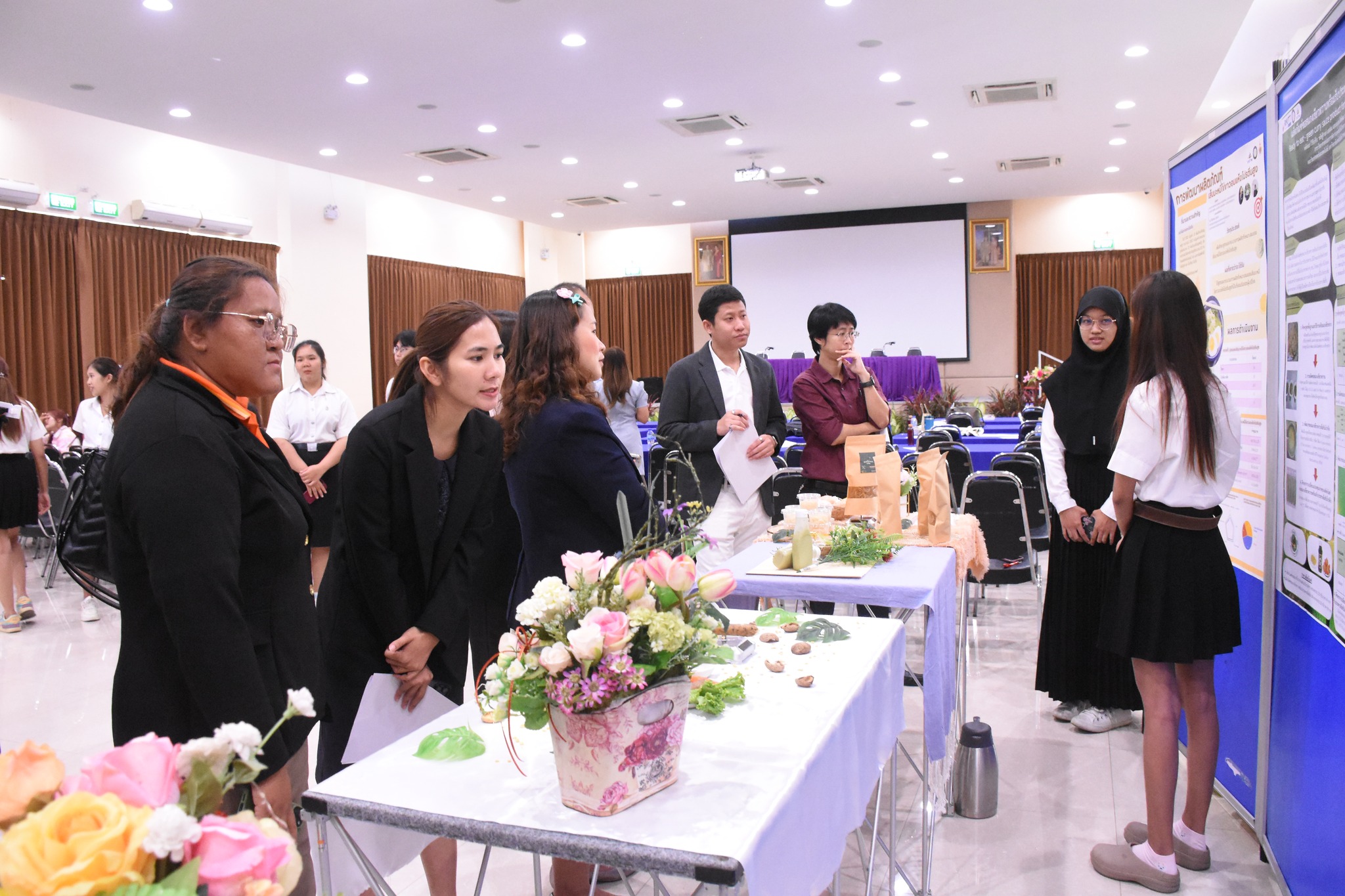 March 6, 2025สาขาวิชาวิทยาศาสตร์และการจัดการเทคโนโลยีอาหาร คณะวิทยาศาสตร์และเทคโนโลยี จัดแสดงนิทรรศการโครงงานและงานวิจัยของนักศึกษาชั้นปีที่ 4 โดยมีผู้บริหารจากบริษัท เพิ่มบุญ กรุ๊ป จำกัด, บริษัท บริบูรณ์ ฟาร์ม จำกัด, บริษัท เดอะ วีร่า การ์เดน จำกัด และบริษัท แอท ฟลาวเวอร์ จำกัด เข้าร่วมเยี่ยมชมและให้คำแนะนำที่เป็นประโยชน์แก่นักศึกษา เมื่อวันที่ 5 มีนาคม 2568 ณ ห้องประชุมนลินวิทย์ คณะวิทยาศาสตร์และเทคโนโลยี
